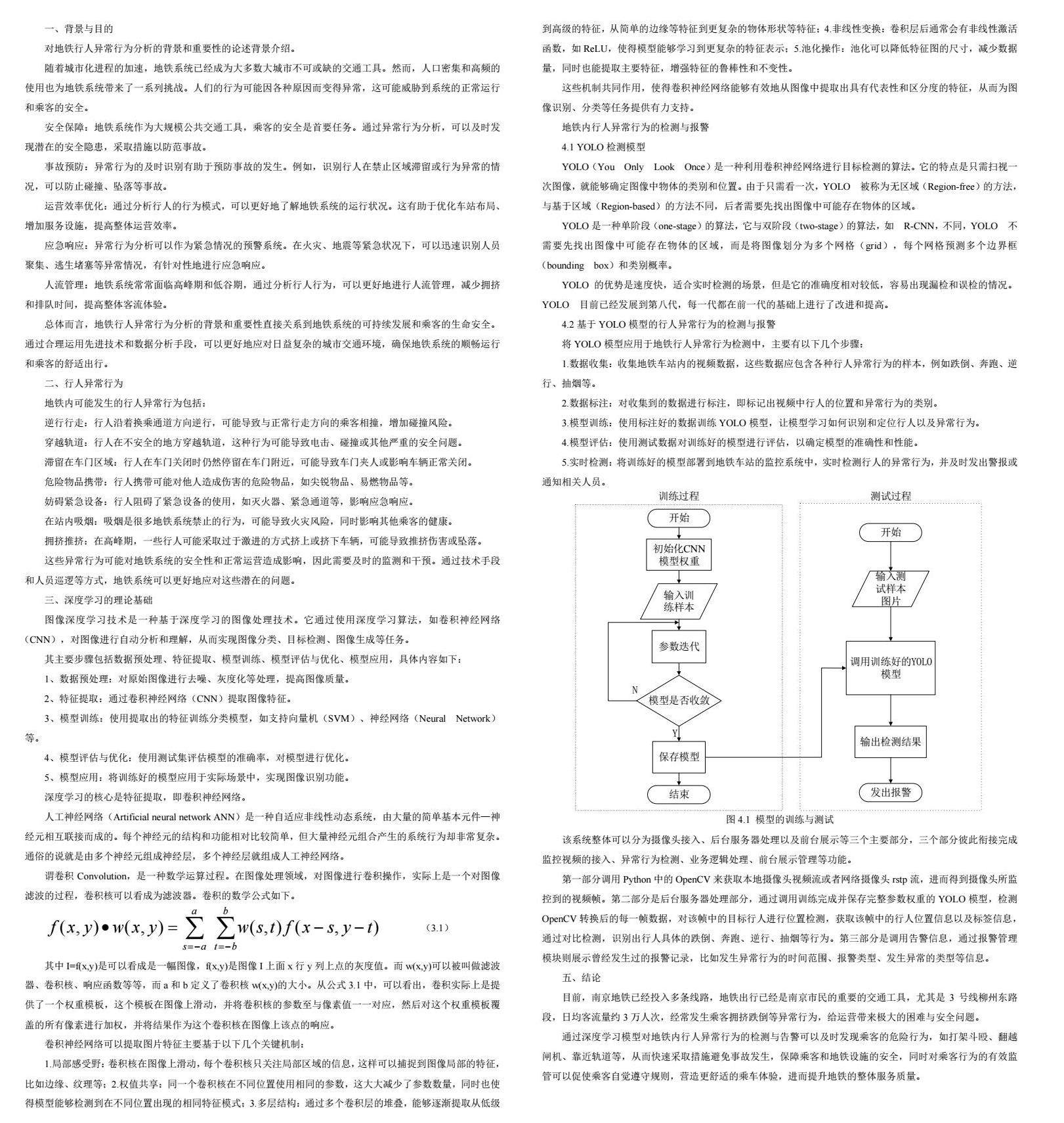 5.实时检测:将训练好的模型部署到地铁车站的监控系统中,实时检测行人的异常行为,并及时发出警报或通知相关人员。