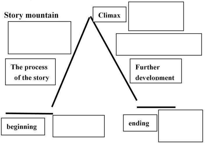 ①引入话题,对故事大意进行梳理,让学生能够清晰具体地回顾寓言故事中人物的动作、语言、情感。初步导入文章主题“社会责任感”,指引学生基于该主题构思续写。同时,指导学生关注到文章用了对比的写作手法。运用故事山引导学生自主对故事情节进行归纳,进一步熟悉文本,为后续写作做准备。