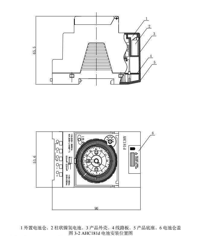 经过优化后的产品改名为AHC18ld定时开关,在新的设计方案中,电池仓盖被设计成可方便用户打开电池仓盖进行电池更换的外置卡扣结构,电池安装位置图见图3-2。采用高强度塑料材质和精密的配合设计,防止灰尘的进入,确保电池仓的密封性。采用防腐蚀材料和防松动接头,优化了电池仓的连接电路设计,确保电路可靠安全。在电路设计方面,新方案优化了电池管理模块,推出了降低电池消耗的低功耗设计。新的电池管理模块可以在电量低于一定水平的情况下,智能检测电池电量并发出提醒信号,提醒用户及时更换电池。这样的设计在增强产品可靠性的同时,也改善了用户的使用体验。