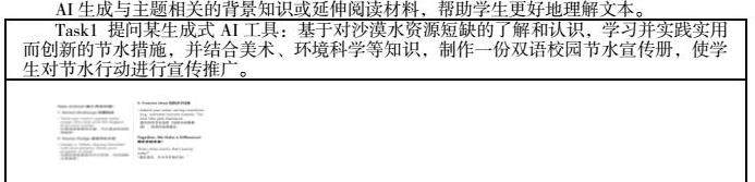 利用生成式AI对教材中的Theme Reading文本进行扩展,在真实的与问题解决密切关联的语境中,围绕主题开展相关的阅读,并使用较为规范的语言进行口头和书面表达,并在项目推进过程中进行自主探究与合作学习。