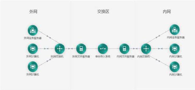 为了应对这些挑战,企业、政府、军工、院校等各类组织机构不断加强信息安全防护体系建设,主要手段包括防火墙、入侵检测系统、入侵防御系统、漏洞扫描设备、行为审计设备等,但是这些系统和设备本质上都是将不同类别的网络进行逻辑隔离,只要是逻辑隔离就会在数据流转过程中造成极大信息泄露危险和网络安全风险。因此,国家安全保密部门要求党政、军队、央企等单位将承载敏感数据的内部网络(涉密网)与外部网络(互联网)之间采取物理隔离的方式,以确保内部敏感数据的安全保密。这种方式虽然能有效保障敏感信息的安全保密要求,但无法进行安全便捷的数据交换,从而造成信息交换不畅,阻碍信息系统发展。有的单位安排专人刻录光盘,以点对点的形式传输数据,但这种形式存在操作繁琐、耗时长、数据易染毒出错等问题,只适用于小量、非实时、近距离的信息流转。当涉及到大量、实时、长距离的信息流转就迫切的需要新思路来设计一套跨网数据流转单向导入的方案,以达到信息有效、安全流转的目的,网间的安全隔离与信息交换技术应运而生。
