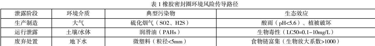 美国环境保护署(EPA)2022年工业泄漏报告指出,全球65%以上的工业泄漏事故由密封失效引发,其中橡胶密封圈泄漏导致的挥发性有机化合物(VOCs)、油类及有毒物质释放已成为主要污染源。典型案例包括2010年墨西哥湾Deepwater Horizon钻井平台因密封失效导致490万桶原油泄漏,造成逾18000平方公里海洋生态灾难,预估生态恢复周期达30-50年。现行国际标准(如ISO 3601、ASTM D2000)过度聚焦机械性能指标(拉伸强度、压缩永久变形率等),缺乏对材料环境毒性、泄漏介质迁移性及全生命周期碳排放的系统考量。构建环境关联性检测标准体系,对预防介质泄漏污染、控制生产过程VOCs排放及促进废弃物资源化具有显著意义。
