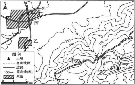 (3)为了避暑,同学们决定把宿营地点选在甲聚落处的主要原因是。(3分)