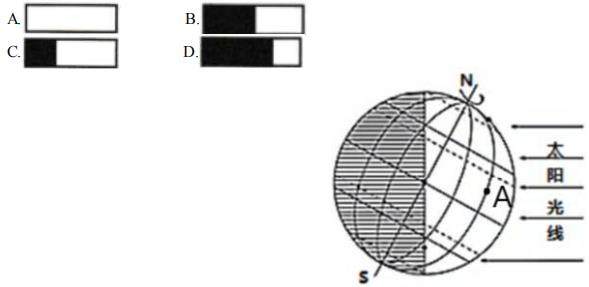4.用白色表示昼长,黑色表示夜长,则表示图中A点昼夜长短分布情况的是( )
