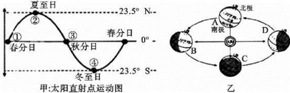 A.直射点向南运动,昼变短 B.直射点向南运动,昼变长