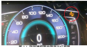 故障现象:一辆 2020 款 230T 自动炫曜赛道版奕炫轿车出现防碰撞预警故障警示灯常亮,一直处于报警状态从而影响车辆正常行驶防碰撞预警故障指示灯报警,如图3-1 所示。