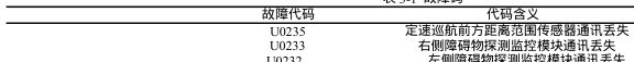 故障诊断与排查:通过数据流分析法来对车辆进行故障诊断,将诊断设备接入诊断接口进行故障读取,通过读取故障码,故障码,如表 3-1 所示。表 3-1 故障码