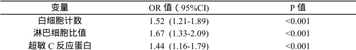 预测模型显示,白细胞计数、淋巴细胞比值和超敏 C 反应蛋白是最重要的预测变量。模型的敏感性和特异性分别为 80.5% 和 78.9% ,具有较高的临床应用价值。