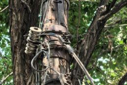 图8:齐贤北街木质电线杆顶部遗留的陶瓷绝缘子