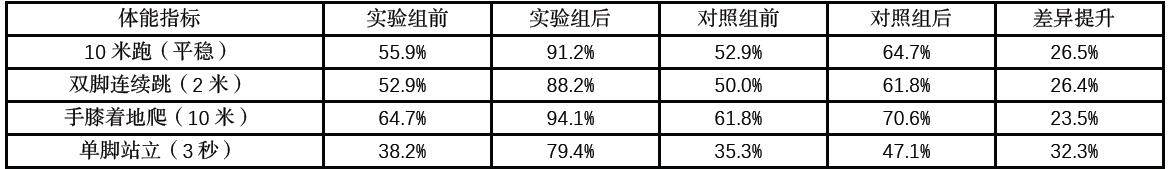 (一)体能提升效果:实验组幼儿达标率显著提高