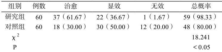 研究组临床疗效优于对照组,差异显著( p<0.05 ),具体如下表 1