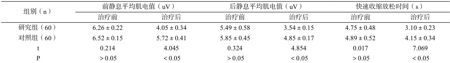 1.3.2Glazer 评估指标比较:治疗前后使用盆底表面肌电分析及生物反馈训练系统检测。
