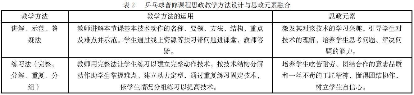 2“立德树人”视域下乒乓球普修课程思政教学实践