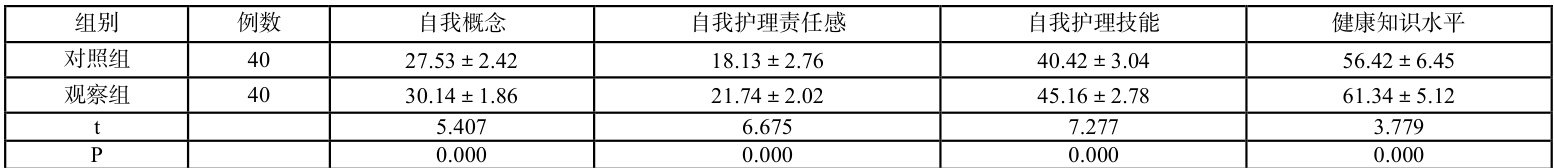 表 2 两组自我护理能力比较(