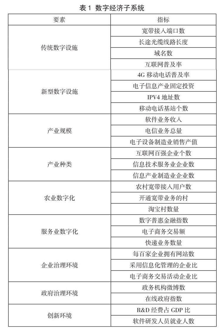 本文建立包含9个要素层与27个指标的数字经济子系统。