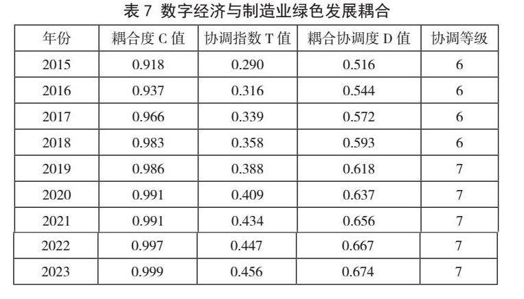 为数字经济与制造业绿色发展、供应链绿色发展间的耦合度,为数字经济与制造业绿色发展、供应链绿色发展间的综合评价指数,和为待定系数,本文认为数字经济水平与制造业绿色发展、供应链绿色发展水平同等重要,因此取==0.5。为数字经济与制造业绿色发展、供应链绿色发展两个子系统的耦合协调度,代表数字经济与制造业绿色发展、供应链绿色发展的协调发展程度。