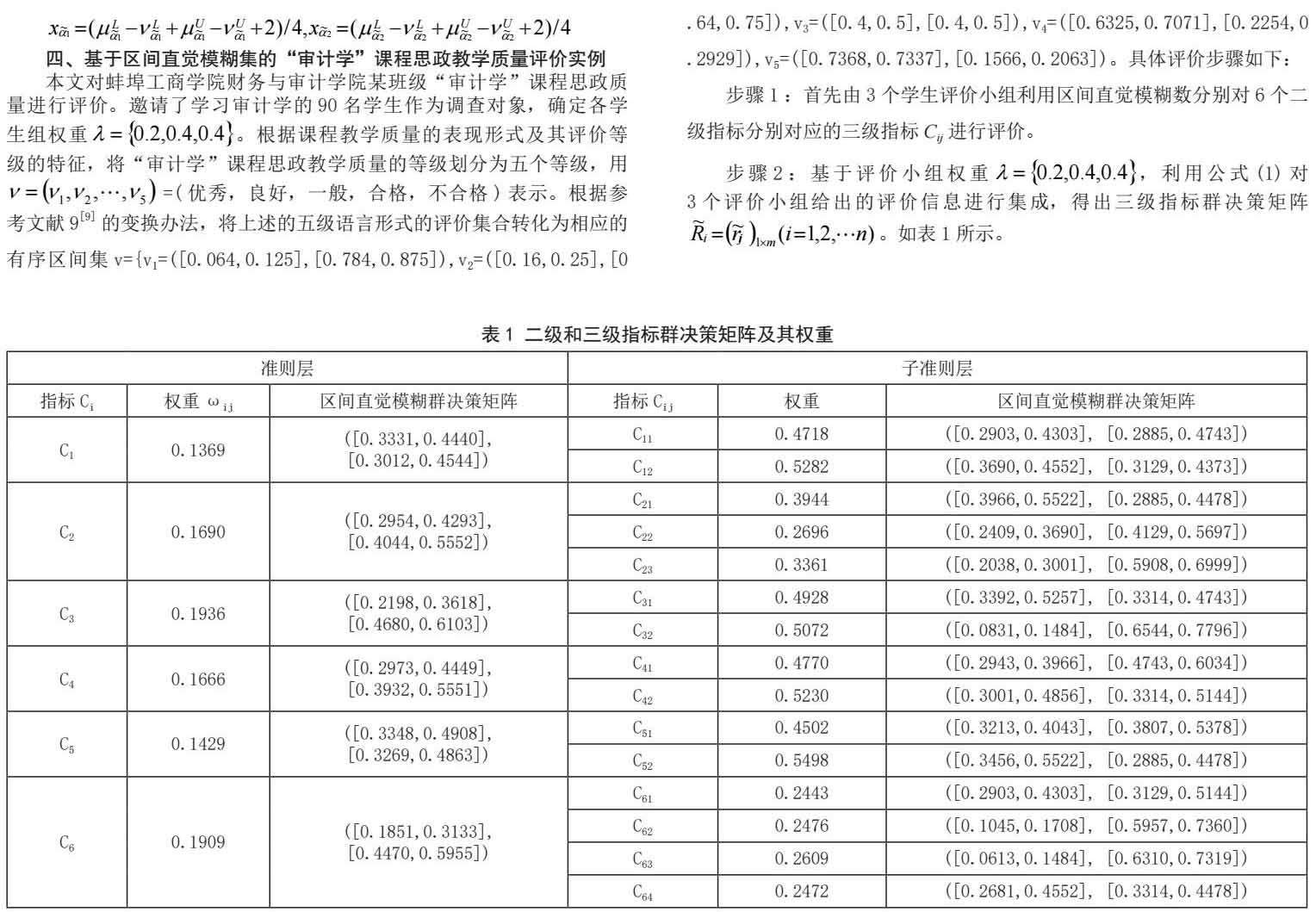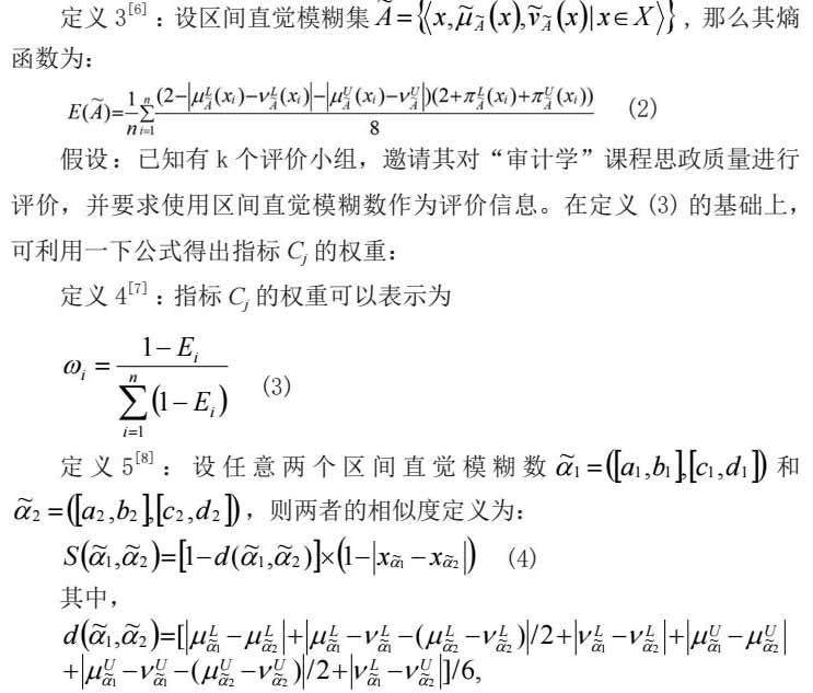 关键词:区间直觉模糊集;审计学;课程思政;质量评价