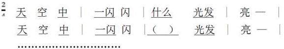 整个过程中学生通过对语文课知识的回忆、思考,熟悉了歌曲歌词的同时,加入了对特殊节奏型切分节奏的练习,感受了四二拍的强弱特点,解决了节拍节奏的难点。