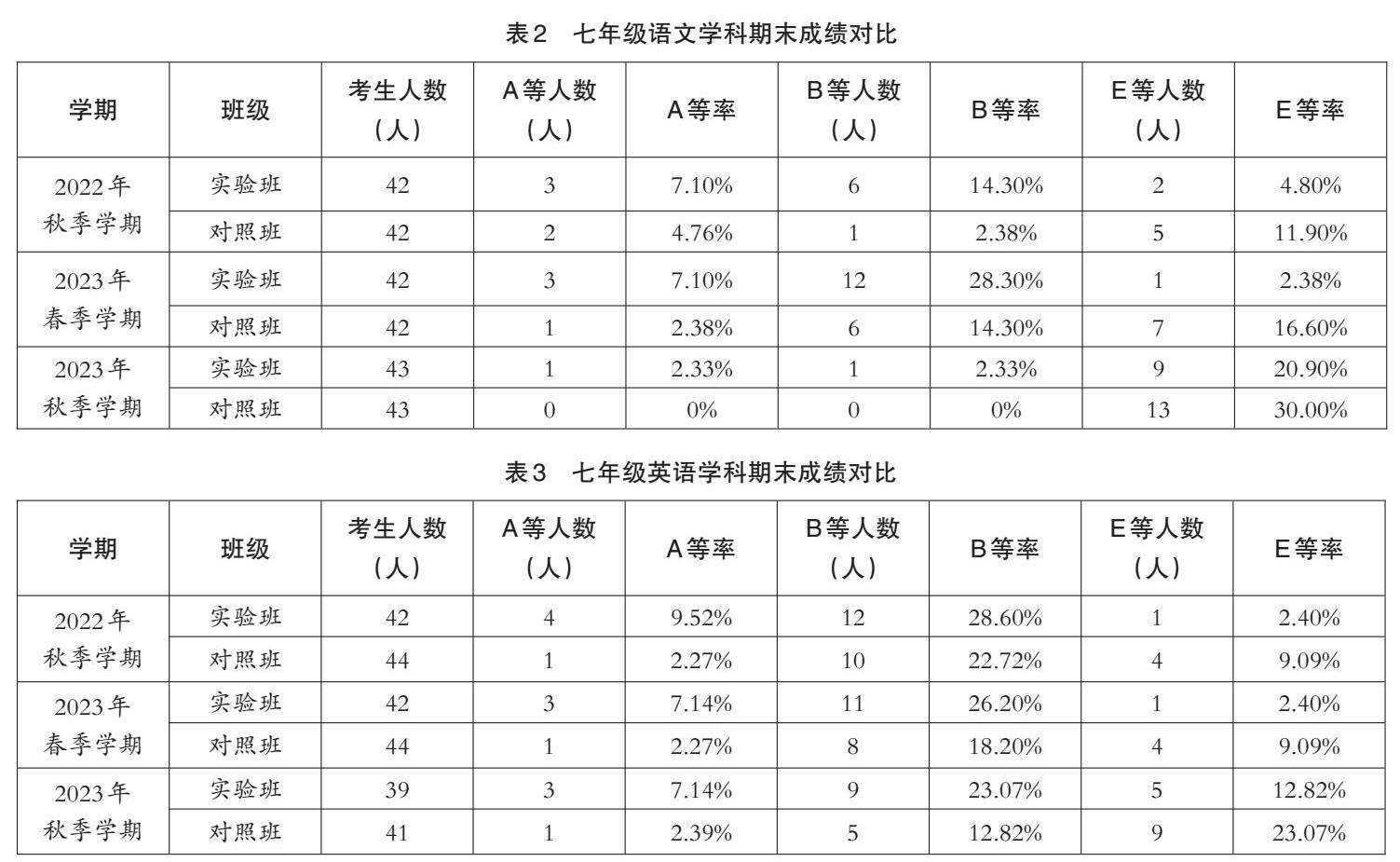 (一)学生方面。一是基于数字资源应用的差异化作业设计,丰富了作业的内容和方法,增强了作业的吸引力和有效性,满足了每个学生的学习需求,从而有效调动学生的主观能动性,激发学生的学习欲望,提高学生的学习积极性和自主性。二是基于数字资源应用的差异化作业设计,作业形式得到了改进和创新,作业样式更加多样,让学生能够在更短的时间内高质量完成学习任务,有效减轻了学生的过重作业负担,使其有更多的时间去进行其他有益的活动,从而促进学生的全面发展。三是基于数字资源应用的差异化作业设计,作业的内容和形式都更具针对性,使A、B、C每一层次的学生都得到最适合的发展、体验到成功的喜悦(见表2、表3),C层学生愿意交作业、B层学生会做作业、A层学生更喜欢做作业了,从而激发学生的学习热情和潜能。