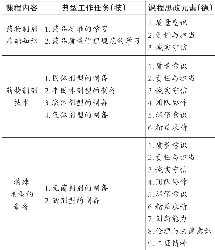 药物制剂课程涵盖药品生产的前处理、生产过程以及质量监控等多个环节,既具有理论深度也强调实践操作。传统的教学方法主要侧重于学生的理论和技能的学习与训练,却忽视了对学生职业道德品质和职业素养的培养。在现代药品生产领域,安全事件的频发已经使众多中职学校意识到培养学生的道德品质和职业素养的重要性,这对他们的长期发展至关重要。