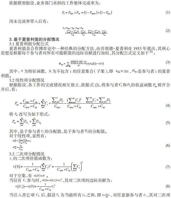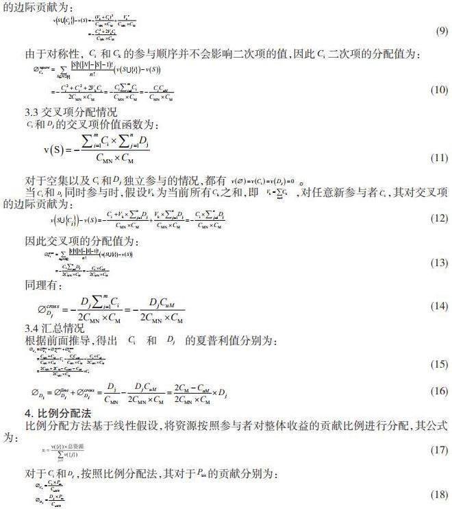 关键词:合作博弈 夏普利值 比例分配 边际贡献