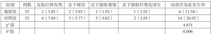 表3 胰岛素注射局部并发症发生情况比较(例, % )
