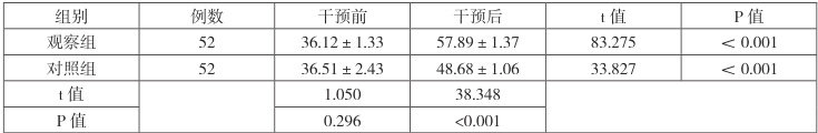 自我管理水平对比,组间、组内比较,统计值< P 值,见表 4。
