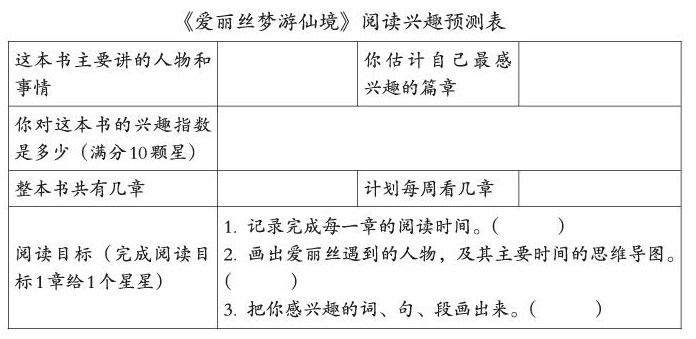 以六年级“快乐读书吧”《爱丽丝梦游仙境》为例,在教师的引导下,学生可在组内提出有趣的问题,规划出阅读时间表,以及共同协商完成的要求、奖励的方式等,鼓励小组之间相互交流,取长补短,激发学生主动地、多角度地思考问题,提高阅读效率,养成良好的阅读习惯。