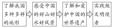 对于此课例,笔者设计围绕目标、凸显主线三个活动,“通过山水密语,你我来感知——山水如画,世界遗产多——文明旅游,公约我承诺”三个活动的设计,其中两个是重点研学的问题。学生合作认识中国的地形地貌结构,了解中国的世界遗产,并创设了“为什么文明旅游有这么难?”的话题讨论情景,最后达成“自律履行文明旅游公约我承诺”等教学目标。在活动中调动学生的主体性,突出学生的个性,解放学生的创造性。课堂上开放的研学问题,使学生自主积极地参与课堂学习,充分体现了“尊重学生个体发展”的新课程理念。