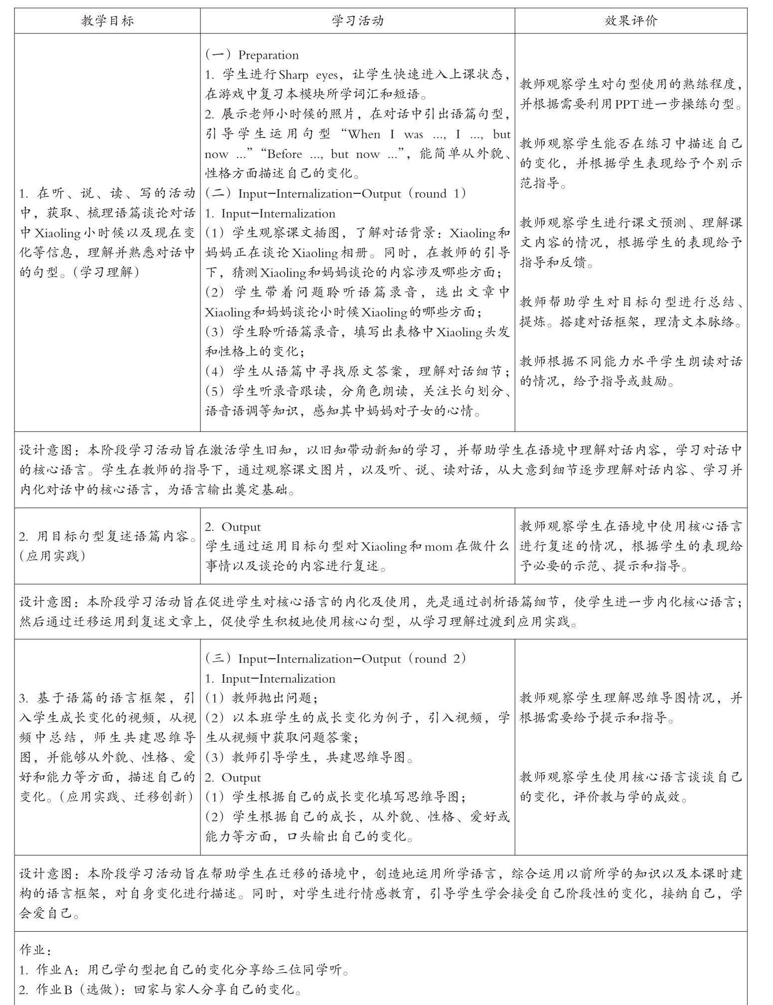 2.[Why]语篇是作者通过描述Xiaoling和妈妈之间看照片的情境,使学生感知并学习句型用语,从而感受自身也有着类似的变化,积极并乐于分享自己的变化。