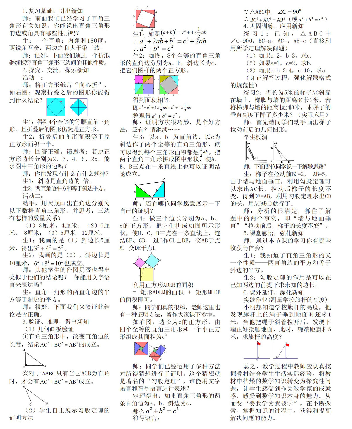 师:很好,下面我们通过一个折纸继续探究直角三角形三边间的其他性质。