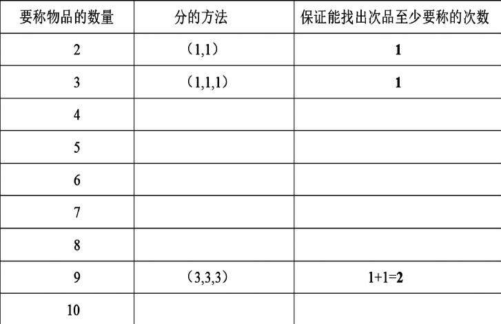3. 为后面找出不同数量物品的次品对应的次数的规律做铺垫】