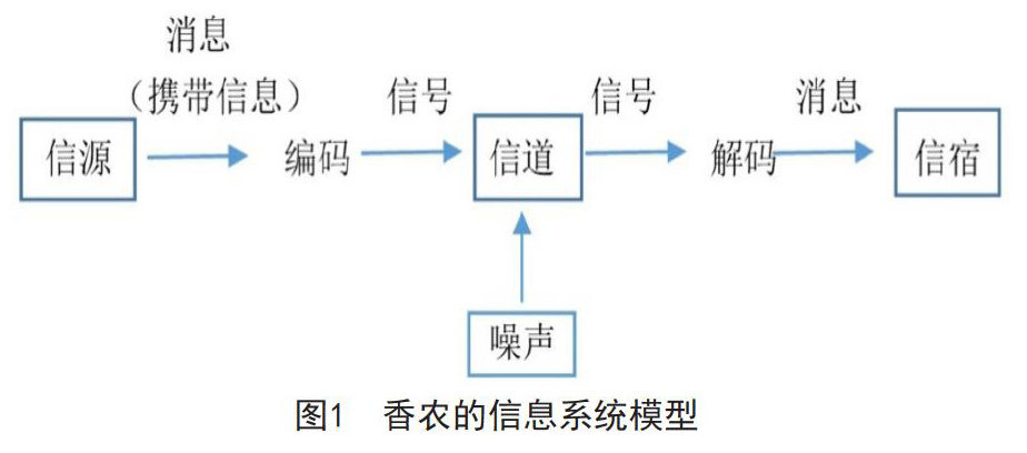 在信息论视角下,信息从信源中发出,通过信道传递,经过编码、解码过程,最后被信宿所接收。信源是产生消息的源头;消息包括语言、文字、图像、符号等;编码将信源产生的消息变换为信号,进入信道。信道中存在噪声,噪声是指干扰信息传输的一切因素。信道输出的是叠加了噪声后的信号。解码器将信道输出的叠加噪声后的信号按照一定的规则还原成信息,送达信息传输的对象信宿。