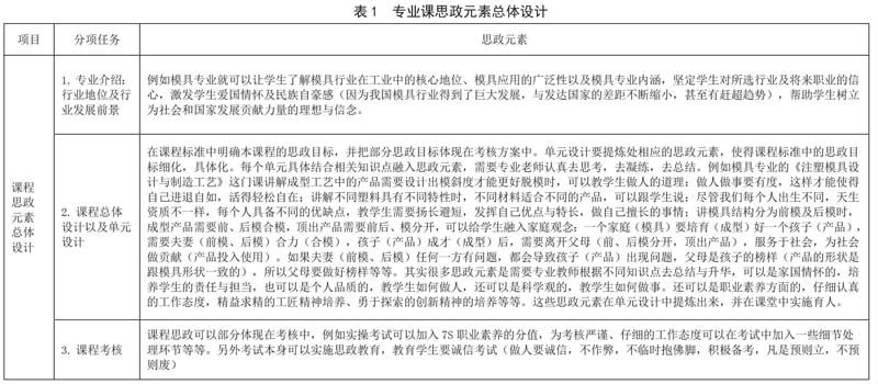 专业课堂开展课程思政,需要专业教师有意识、有计划、有目的地设计教学环节,把专业课程标准进行重新设计,把专业知识点概括、总结及升华,提炼出专业课程知识所蕴含的思政元素。将显性专业知识传授与隐性思政教育有机融合,使得教学内容更加丰富、生动。专业课开展课程思政,首先要对课程的思政元素进行一个总体设计,并对课程的每个教学单元的思政元素进行提炼、梳理、总结,并在课堂教学中实施育人。如表1所示。
