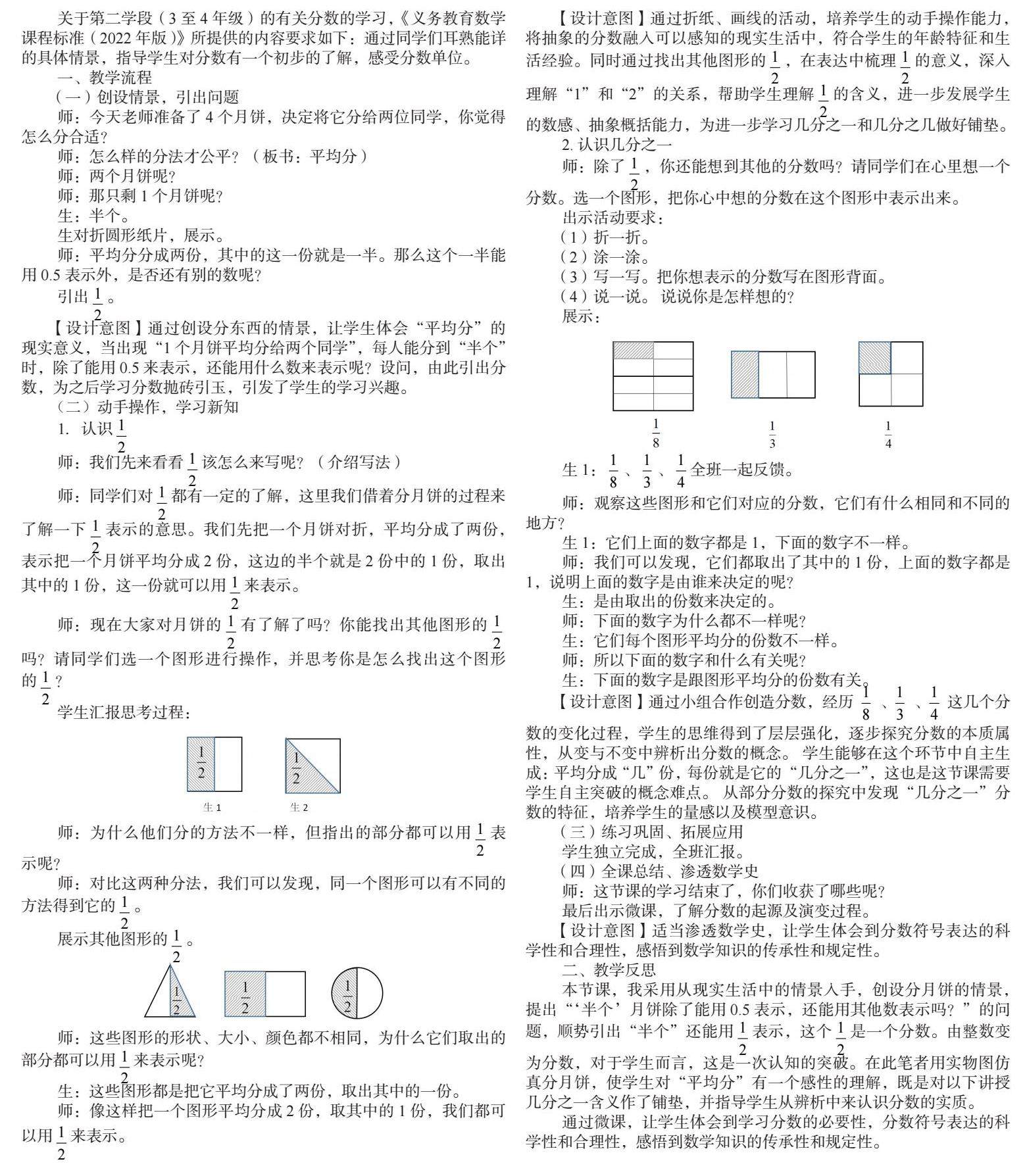 关于第二学段(3至4年级)的有关分数的学习,《义务教育数学课程标准(2022年版)》所提供的内容要求如下:通过同学们耳熟能详的具体情景,指导学生对分数有一个初步的了解,感受分数单位。