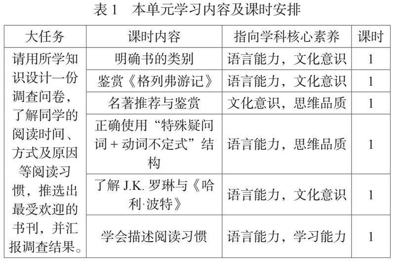 以牛津译林版八年级下册第四单元A good read 为例,在单元概览中,我们设计了“你需要学什么?”板块,明确大任务的同时,了解本单元重难点(见表1)。