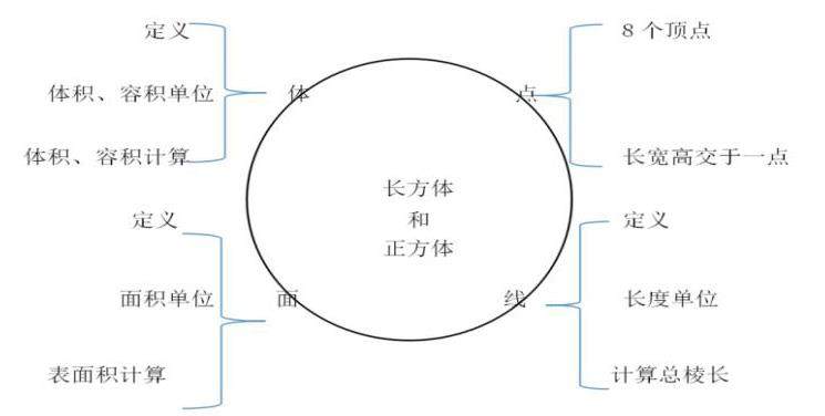 认真梳理内容,仔细分析学情,我们要去复习某个内容,教师自己首先对知识的逻辑顺序要清晰,要明白知识的前因后果,以及它在整个编排中的地位和作用,以及学生在学习这个知识的时候,它的起点在哪里?学习这个内容最容易错的,最难以接受的等等,你得了如指掌。因此,首先要做好知识体系的把握。那么,如何来把握知识体系呢?我们用一个例子来说明,比如《长方形和正方形》:本单元分三小节编排:长方体和正方体的认识;长方体和正方体的表面积;长方体和正方体的体积。在长方体和正方体的体积一节中,还介绍了容积的概念及体积单位、容积单位间的进率、名数的换算,并探索了某些实物体积的测量方法。这个单元教学重点是认识长方体和正方体的特征,理解表面积、体积、容积概念,掌握长方体和正方体的表面积、体积的计算方法,建立体积、容积单位表象,灵活运用所学知识解决实际问题。经过前面的学习,学生已经基本掌握长方体和正方体的特征,理解表面积、体积、容积概念,掌握长方体和正方体的表面积、体积的计算方法,建立了体积、容积单位表象,能灵活运用所学知识解决实际问题。但是本单元是学生从面到体,从二维空间到三维空间,对学生来说还是具有一定的挑战性,特别是线面体三种概念及计算交叉在一起,学生容易混淆,造成认知错误。因此,本单元根据学生的学情以及教材的设计,知识体系如下: