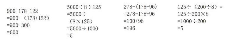 通过练后比较不同方法,从而总结出简便计算的方法就是根据数据的特点,通过加减乘除4种运算,将数据进行合理转化,然后再运用运算定律进行简便计算。