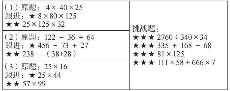 精心挑选和设计了层次分明的练习题,既做到了基础练习,又让孩子体会到了灵活运用知识的必要性,以及对易错易混的题更加明晰,积累问题解决的经验,从而在提高技能和进行知识的延伸。例如这样的练习: