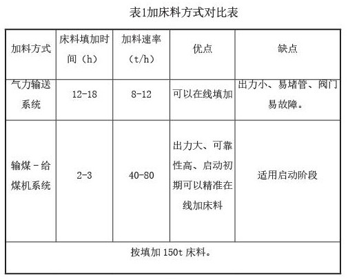 该电厂挖掘现有设备系统,在不增加投资的情况下,通过输煤-给煤机系统实现启动床料填加,并可在锅炉点火初期,在线填加床料。