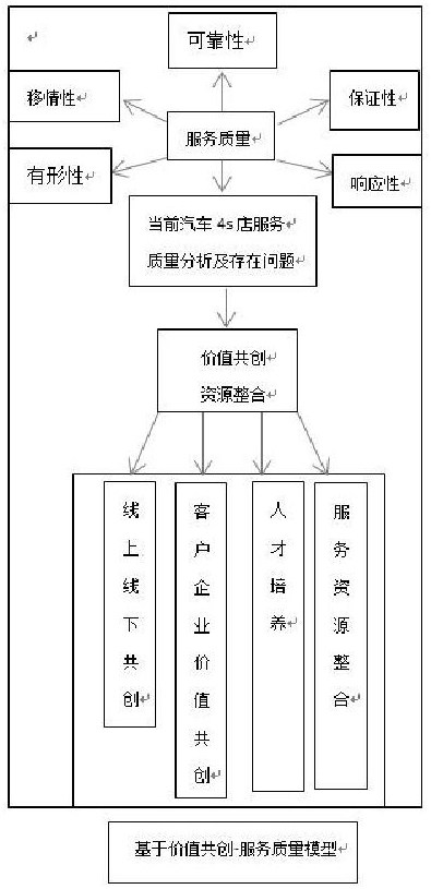 根据前部的整理不难发现,学者们虽然从不同的视角分析价值共创,但是价值共创理念是一致的,企业为了了解客户在产品和服务差异化需求变化,企业和客户保持动态信息沟通和行为互动,通过企业资源整合,实现彼此利益和价值,使得企业和客户达到双赢,或者利益相关者共赢的目的。互联网背景下,价值共创视角正好能解决当前4S店服务质量存在的问题,于是生成了本文的价值共创—服务质量分析模型: