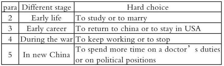 在阅读讲解过程中,文章含义之间的关键词起着重要连接作用,不仅是语法还是情节方面都需要体现主题功能,所以在梳理文本内容和结构时,设置阶段问题显得尤为重要,设置的问题要符合文章主题含义,容纳不同知识点,由易到难的逐层推进,确保问题能够关联文章情节和行文逻辑,尽量设置探索性较强的问题,增加课堂阅读的活跃性,同时也要关注问题设计的思维含量,在主题意义的引领下,帮助学生养成独立思考和自主探究的习惯和能力。例如在进行人教版高中英语第三册Mother of ten thousand babies阅读教学时,笔者设计一个简单表格梳理文章的内容,而显露主题意义。