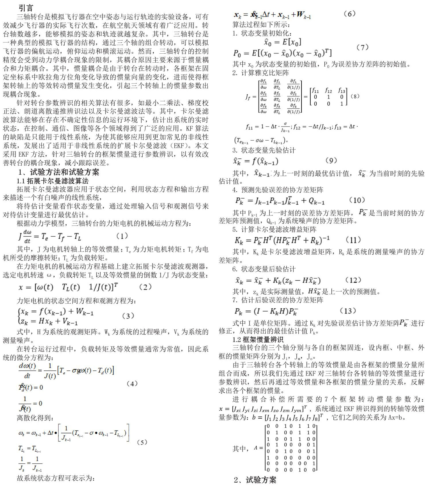 关键词:三轴转台;扩展卡尔曼滤波;惯量参数辨识
