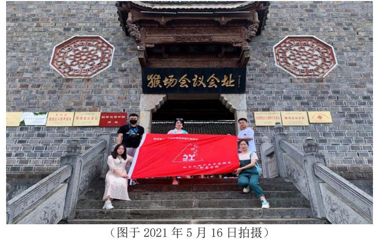 2021年5月16日我们的文创团队来到“不忘初心,伟大转折之旅”路线的旅游景点之一——瓮安猴场会议会址,我们对猴场会议进行实地考察,增强团队成员的爱国主义精神。