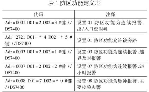 联动安防报警程序依据报警主机以及联动设备参数对不同防区功能进行定义编号,并编写小型报警主机互联程序,共同实现联动安防报警。防区功能定义情况如表1所示。