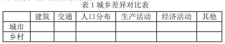 教师活动:教师展示一组城市和乡村差异的图片,补充学生归纳的表格内容。