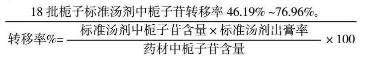 18批栀子标准汤剂中栀子苷转移率46.19% ~76.96%。