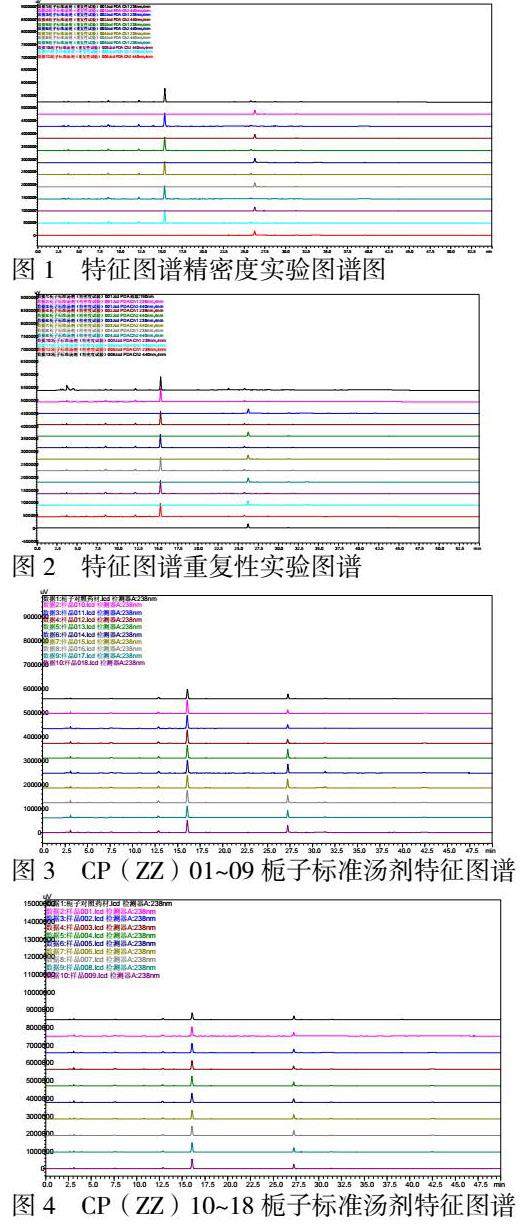 Key words:Gardenia; standard decoction; paste out rate; content determination; characteristic map