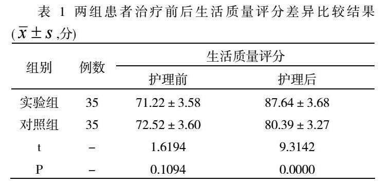 实验组护理后的生活质量评分高于对照组(P<0.05),见表1。