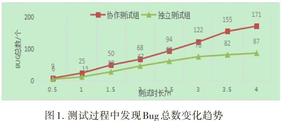 为了分析在协作机制与传统竞争机制环境下的测试效率,我们设置了一组对比实验:将众包工人按1:1比例方法分别设为协作测试组和独立测试组,在测试环境、测试任务及测试时间一致的情况下,协作测试组开展协作众包测试,独立测试组独立测试并提交测试用例和报告。
